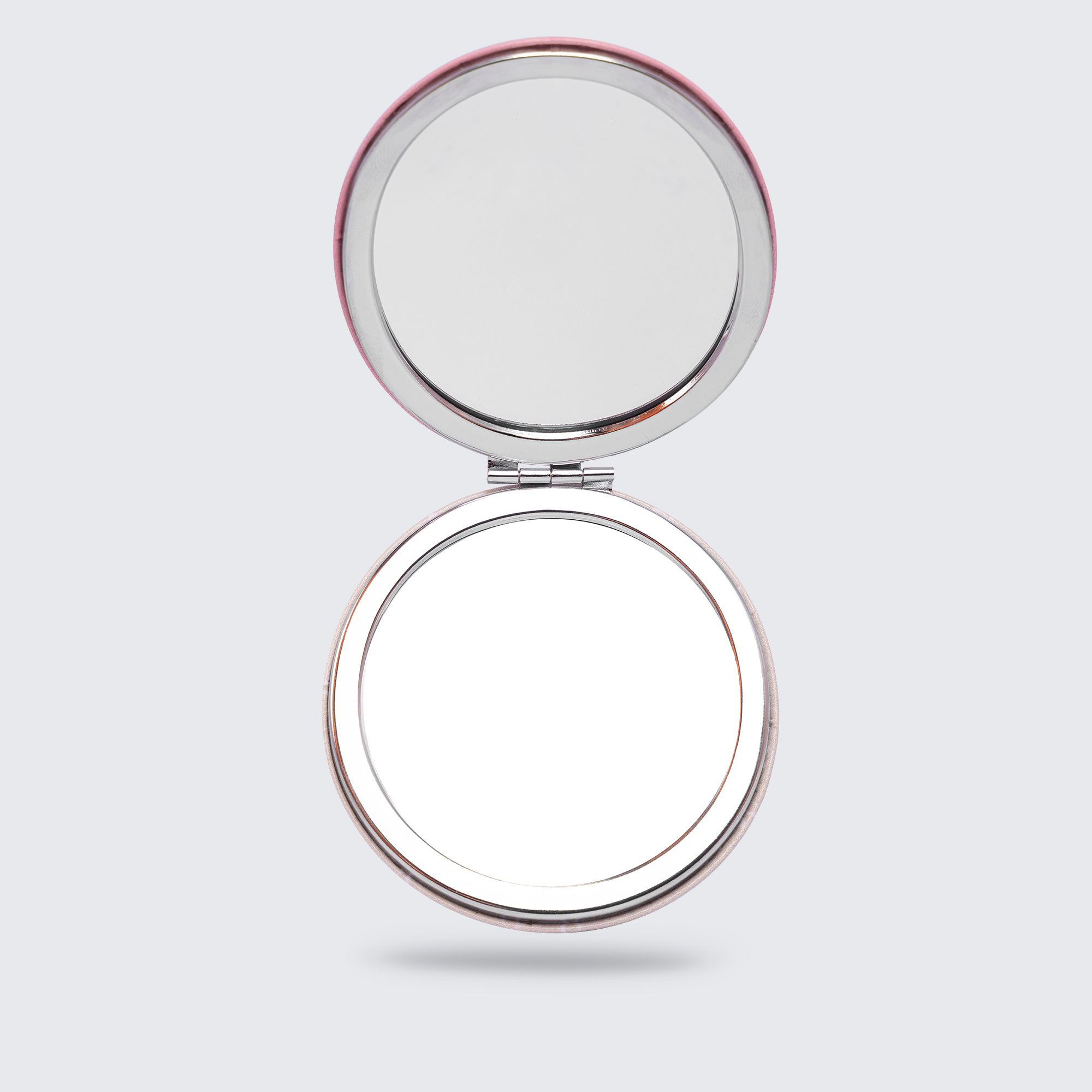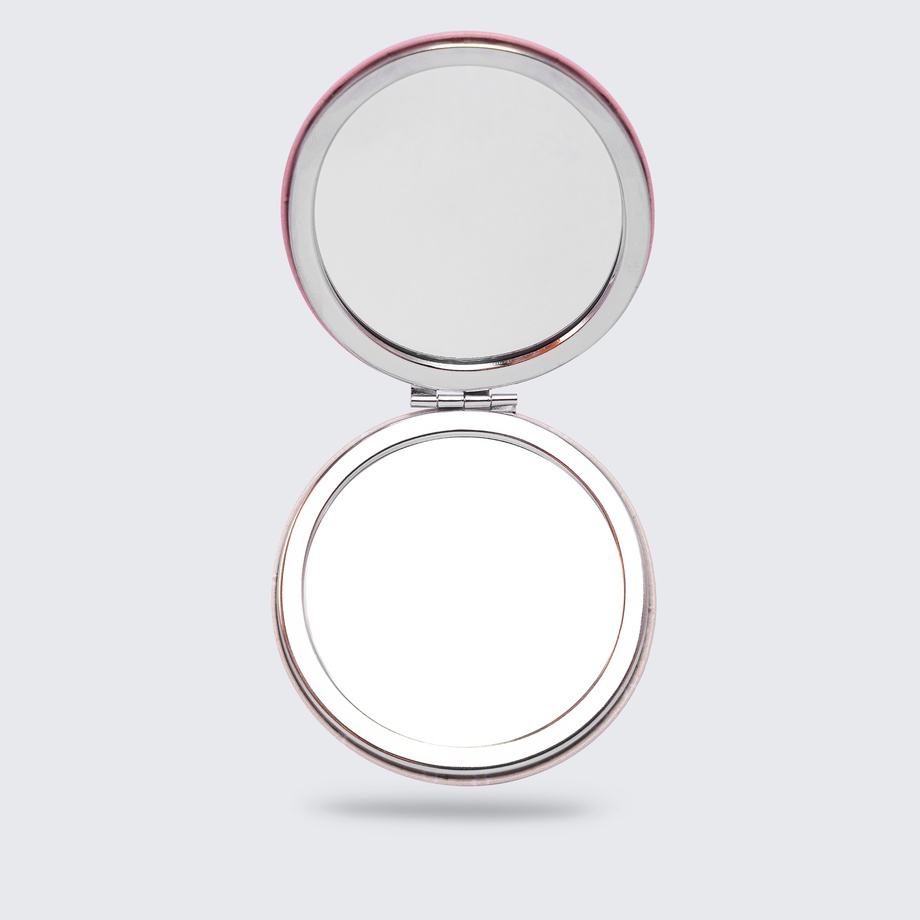 Our compact mirror is beautifully constructed with a faux-leather encasement, pink on one side and rich cream on the other. With a sleek design, it features an invisible magnetic clasp that keeps it shut securely in your bag.
